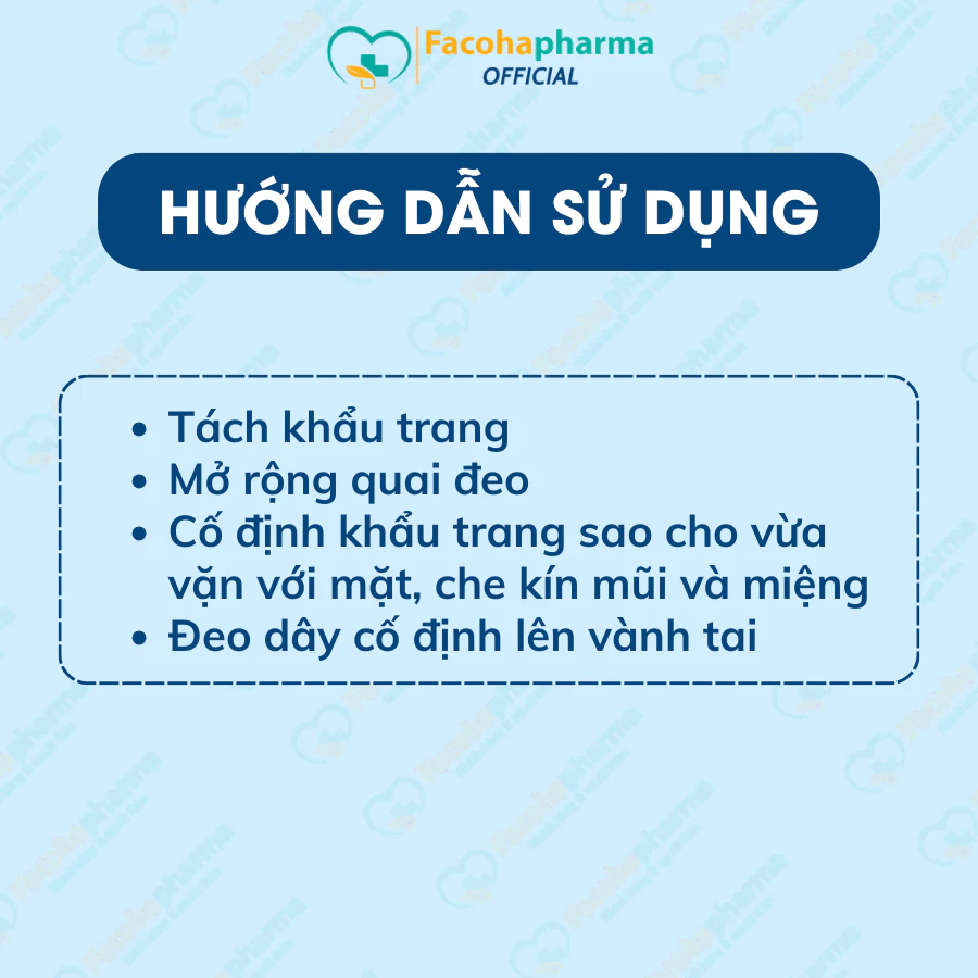Cố định khẩu trang: Đặt khẩu trang lên mặt, đảm bảo che kín mũi và miệng.